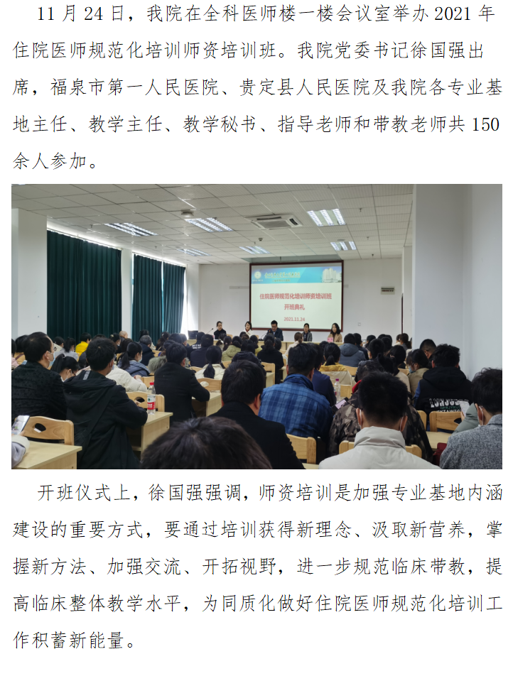 加强师资队伍建设提升住培质量—我院举办2021年住院医师规范化培训师资培训班