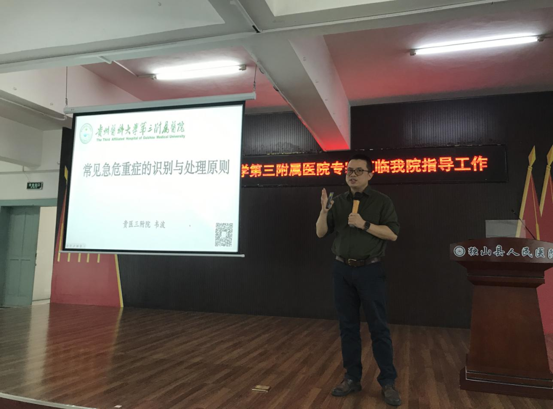 近日,我院重症医学科副主任韦波、护士长吴云、专科护士杨德梅一行到独山县人民医院、独山县中医医院开展专题讲座,进一步落实《黔南州医疗机构专科联盟建设实施方案》要求,提升基层医务人员对危重症病情的准确判断和急救处置能力,促进重症医学科建设。