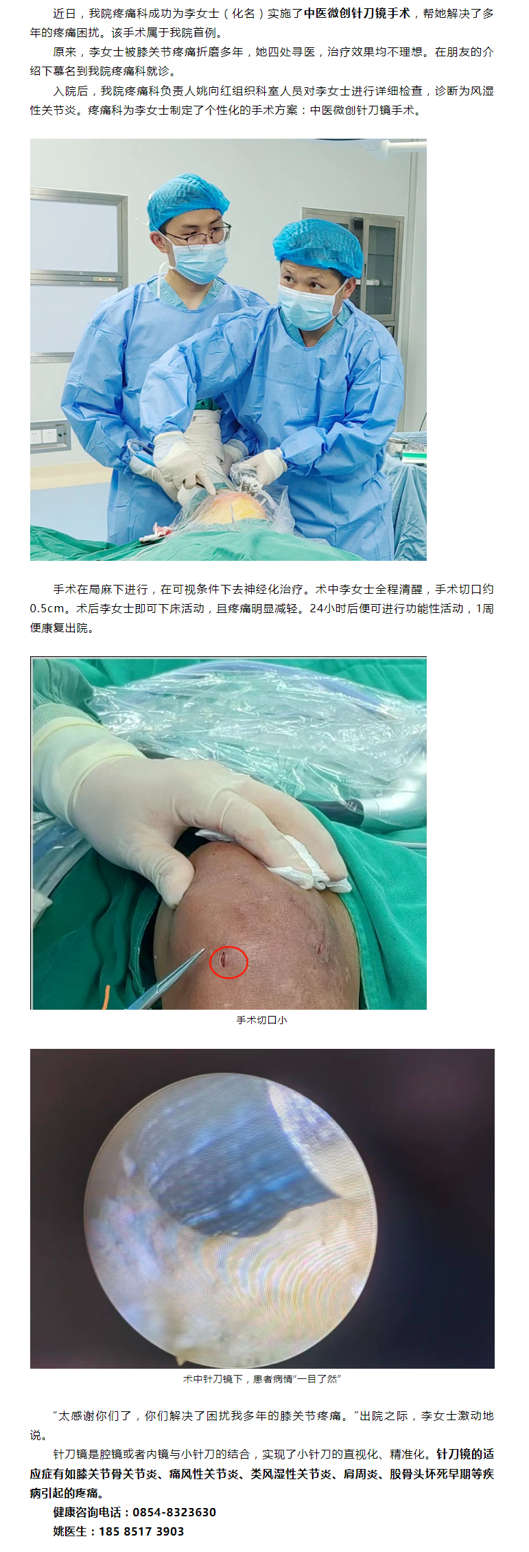 【院内首例】0.5厘米小切口巧治多年疼痛