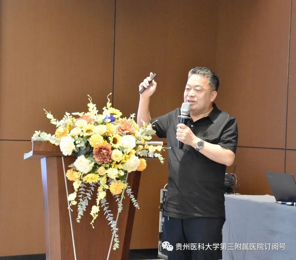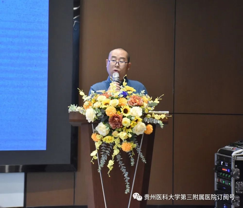 黔南州卫生健康局医政医管科科长孙明宪致词,对出席会议的各位学员提出要求,希望大家珍惜这次交流、学习的机会,将风湿免疫科新技术带到临床一线,共同推动全州医疗卫生事业的发展。