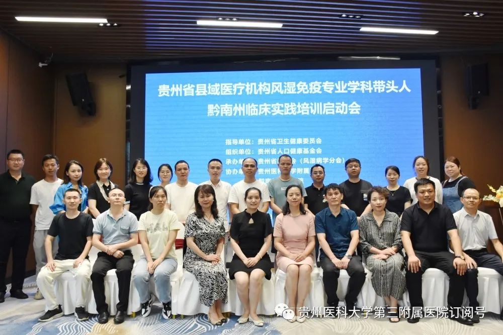 近日,由省卫生健康委指导,省人口健康基金会组织,省医学会(风湿病学分会)承办,我院等单位协办的贵州省县域医疗机构风湿免疫专业学科带头人黔南州第一期临床实践培训班顺利举行。省内风湿免疫学专家、黔南州各县市医疗机构风湿免疫学科带头人参加。