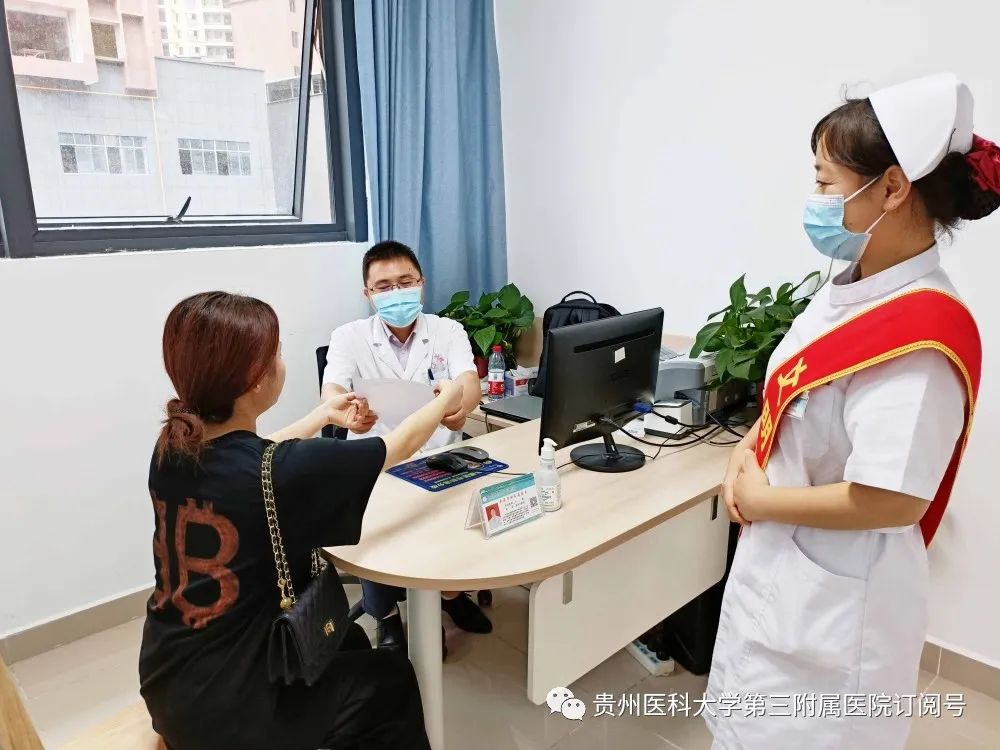门诊部随机抽选一名导诊护士全程陪同来院就诊患者挂号、就诊、缴费、检查、取药等。在患者排队就诊过程中,导诊护士为患者介绍医院环境、开展的新技术,并对患者进行健康宣教,给予诊治建议。该举动不仅缓解了患者排队就诊时的焦虑,同时也宣传了医院文化特色。