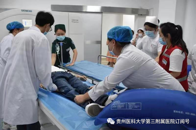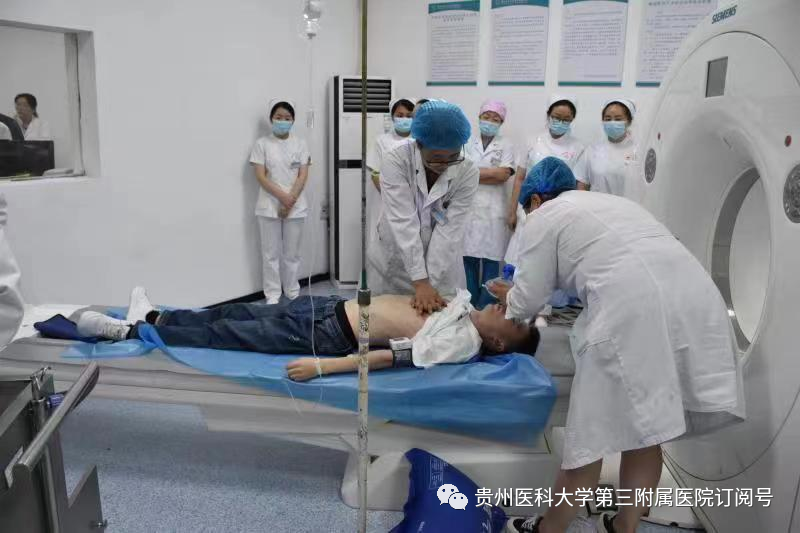 演练中,影像科医务人员发现正在做CT造影的患者示意身体不舒服。经检查,确认为碘过敏性休克,立即启动抢救应急预案。停止检查,同时通知相关科室前来配合抢救。给氧、保持患者呼吸道通畅、建立静脉通道、行心肺复苏、遵医嘱给药……每一位医务人员都全神贯注,反应迅速,按照各自职责抢救患者,操作严谨细致。在大家的密切配合下,患者恢复自主呼吸,意识逐渐清醒。随后将患者转入相关科室接受进一步观察和治疗。