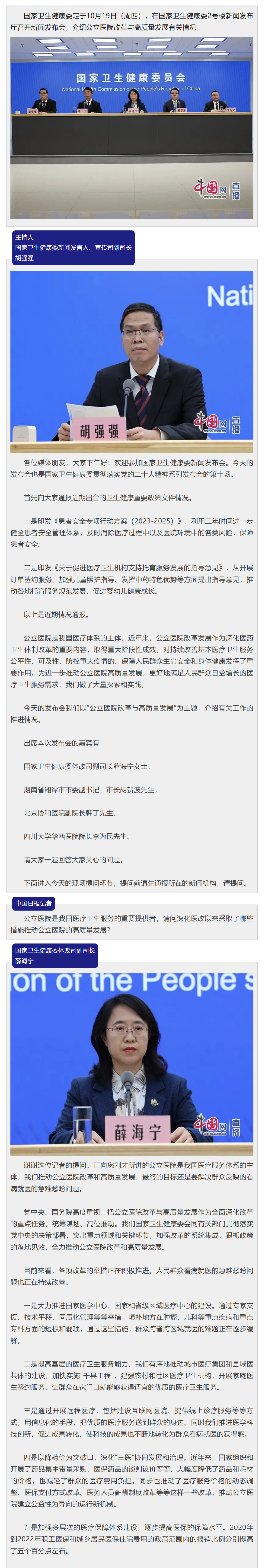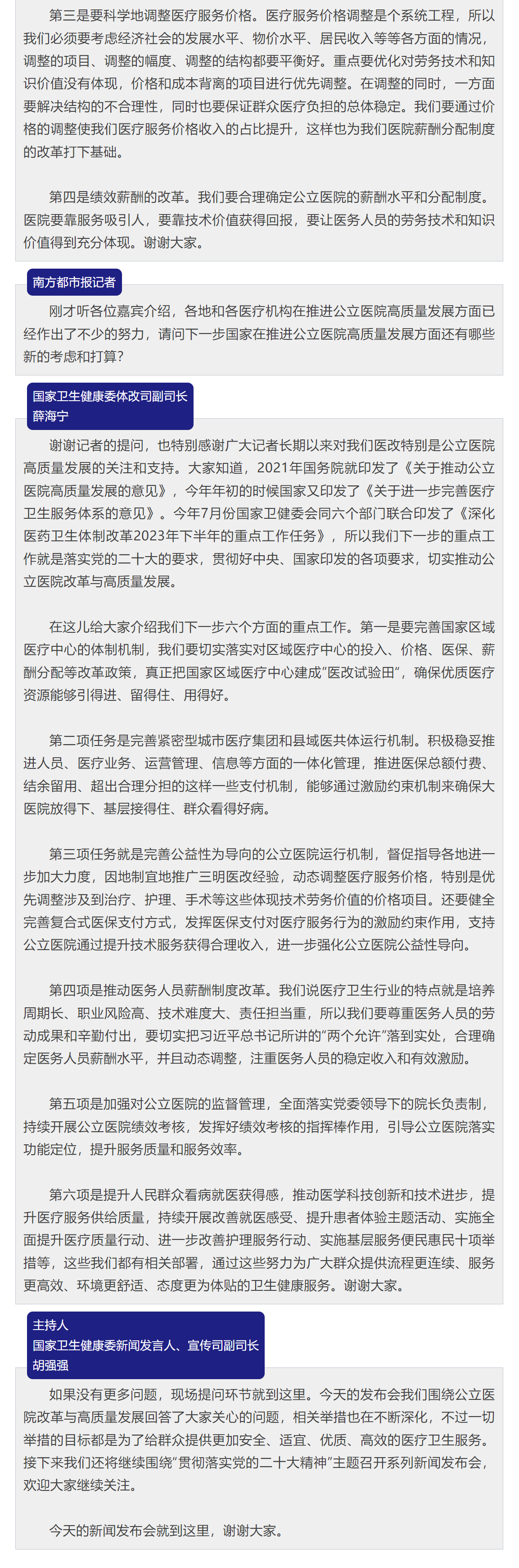 国家卫生健康委就介绍公立医院改革与高质量发展有关情况举行发布会(文字实录)