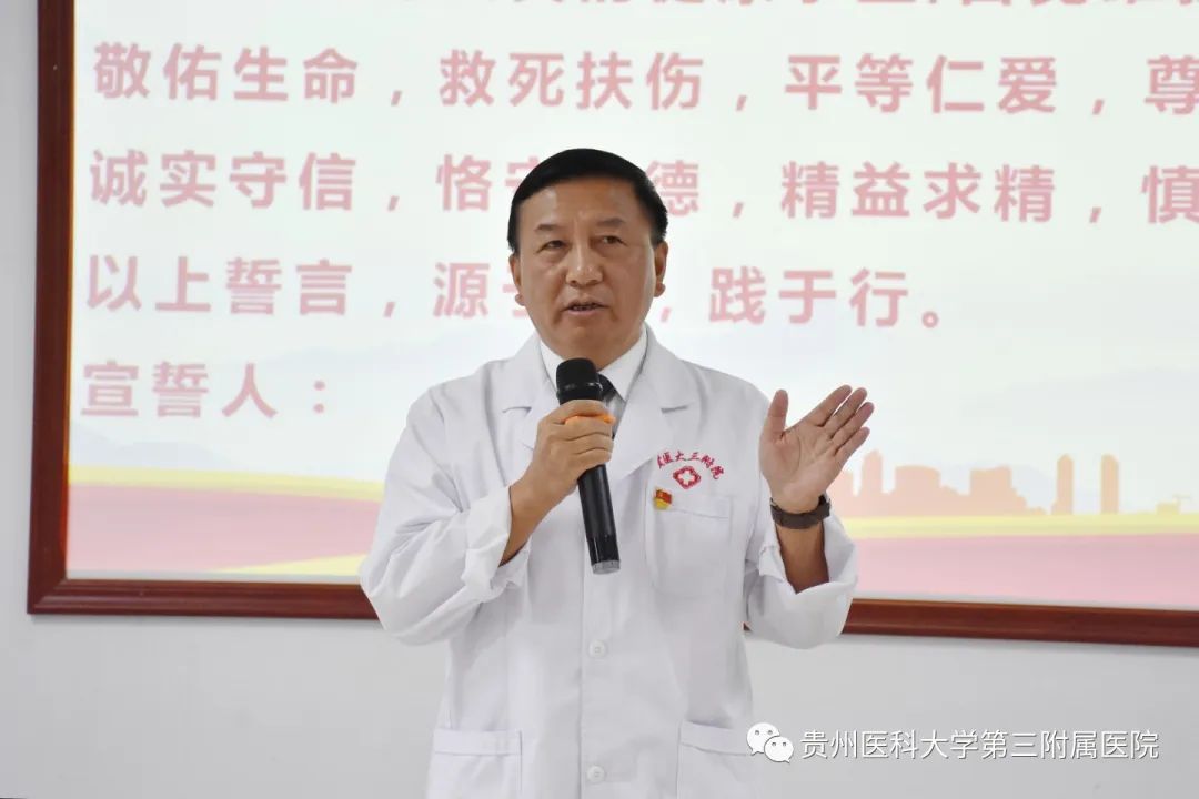 党委副书记、院长刘兴贵带领医师宣誓,希望大家加强学习、刻苦钻研,更好地为群众的健康护航。
