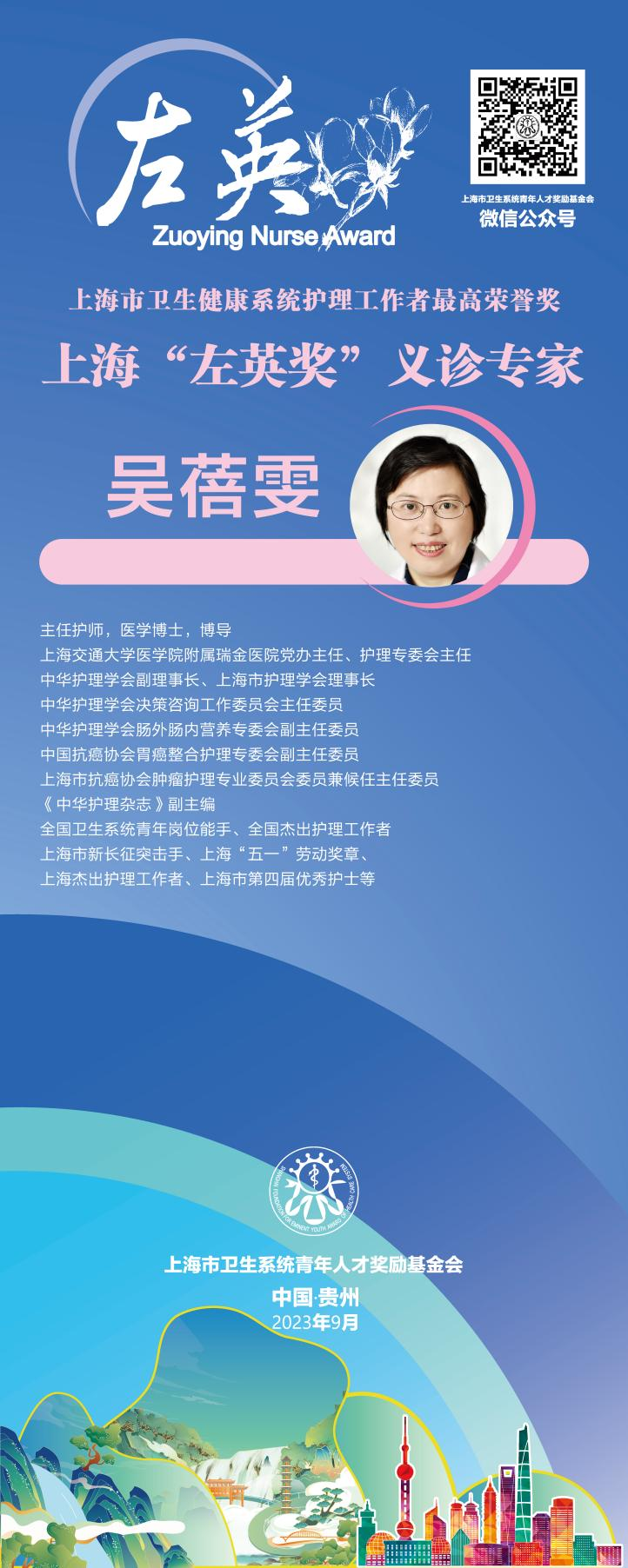 吴蓓雯 中华护理学会副理事长兼上海市护理学会理事长、瑞金医院主任护师、博导