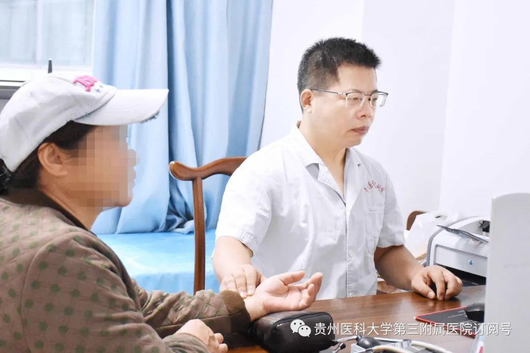 在贵医大三附院中医科诊室内,一位医生正耐心细致地为患者答疑解惑。