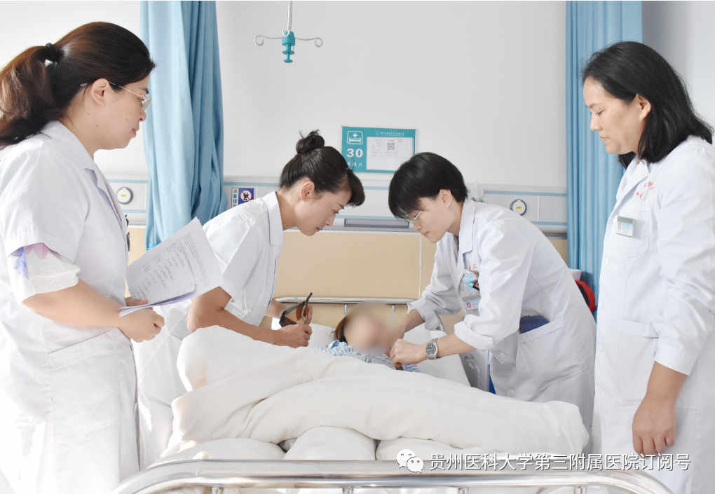 随后,陈慧与妇科团队进行业务查房,认真细致为患者查体,耐心与家属沟通,同时分享了贵医附院处理妇科疾病的经验。
