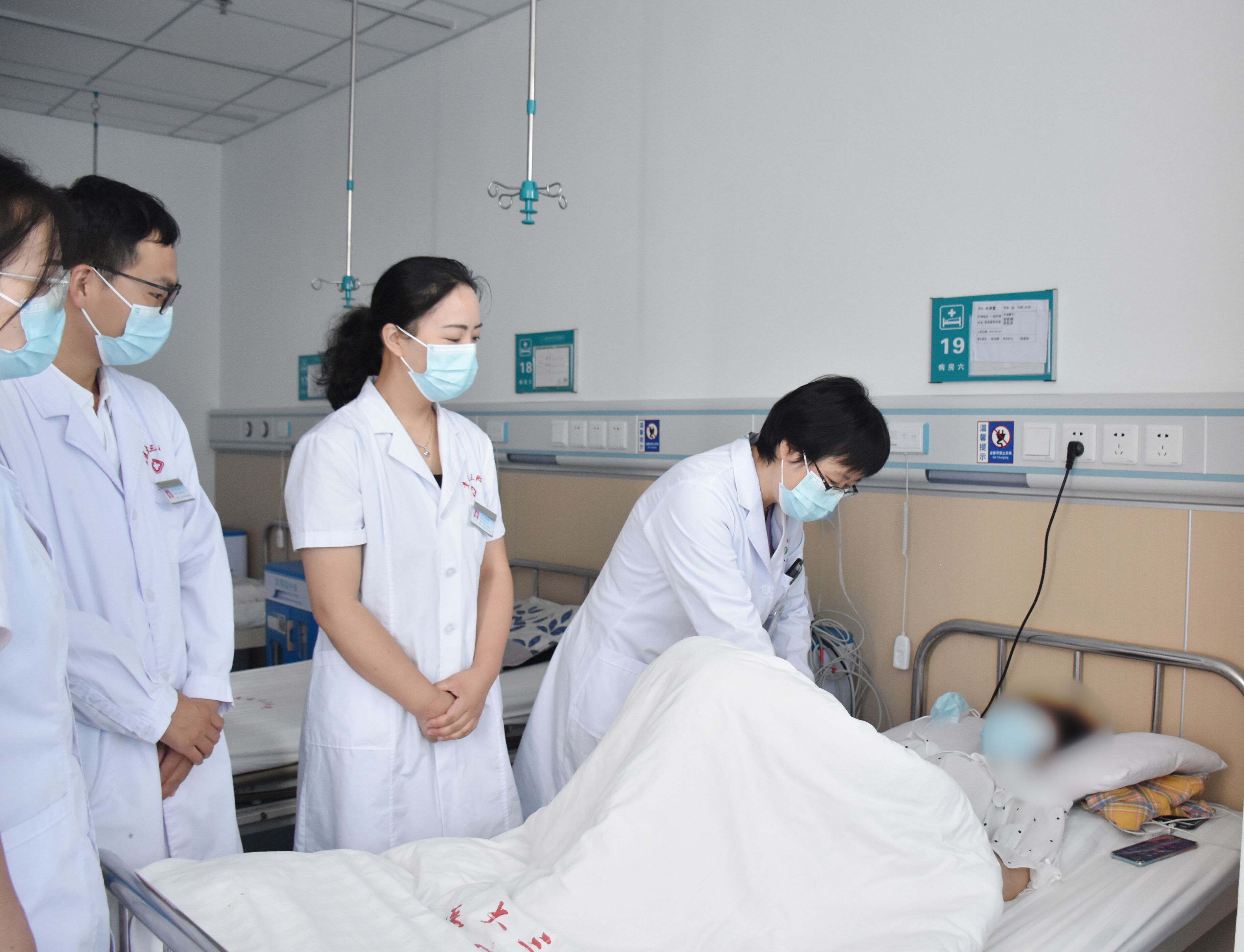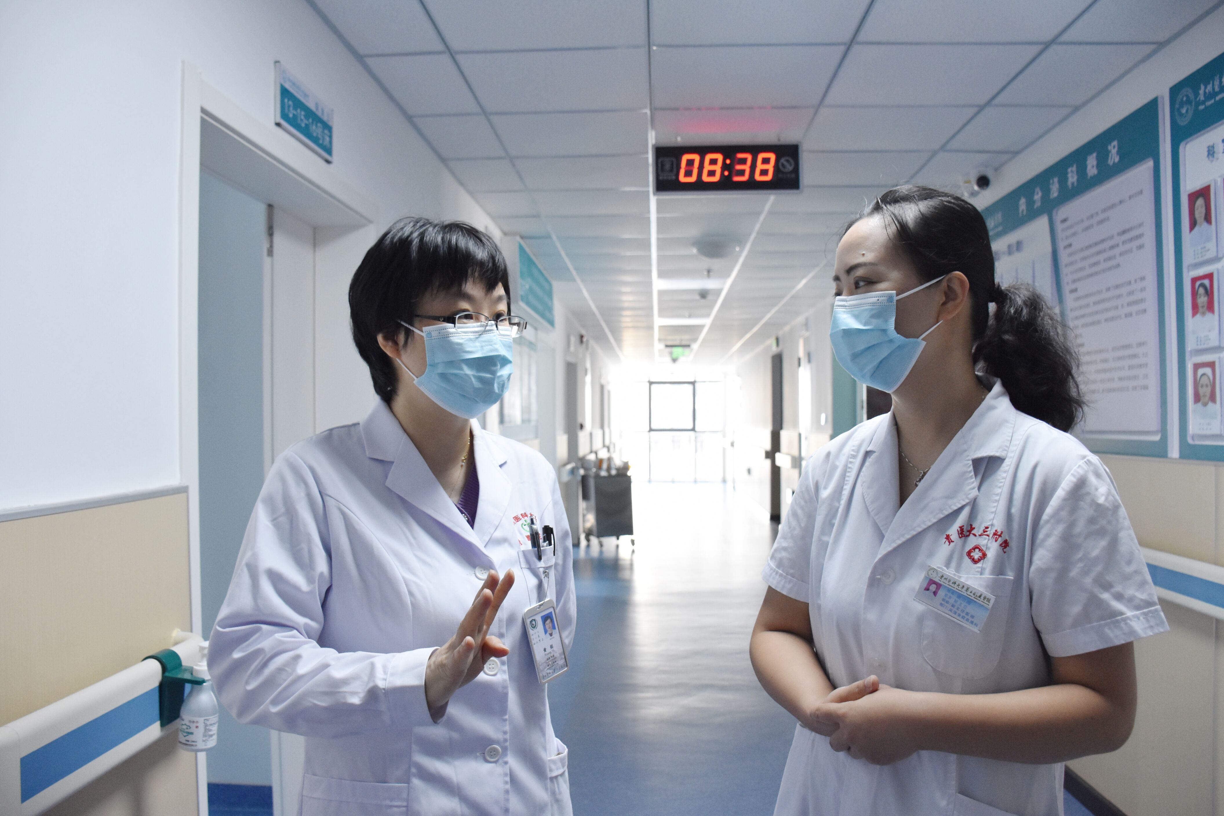 黄懿与我院血液内科团队一起交班、查房,并与科室副主任谢治卿深入交流。她说,来到三附院驻点很开心,会把所学所长应用到工作中,一定为科室发展竭尽全力,全力守护患者健康。