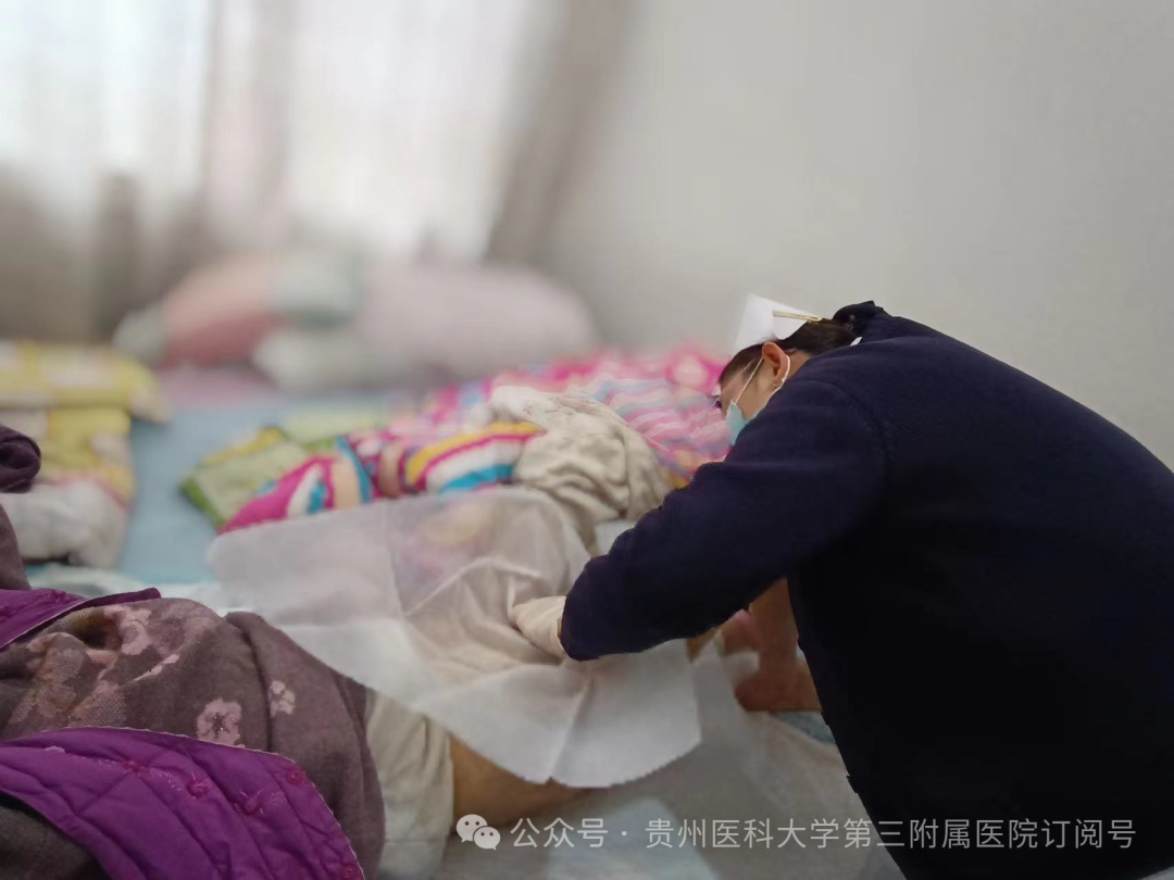 张奶奶已经可以自行解小便。她感动地说:“太感谢你们了,我活动不方便,你们还能上门更换尿管,给我提供很大的帮助,辛苦你们了!”