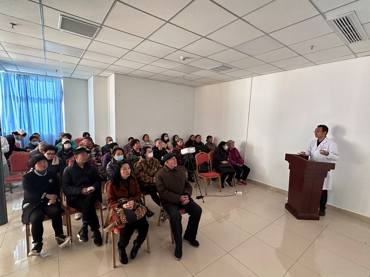 神经内科副主任医师赵斌,主管护师史建玲为大家详细讲解了脑卒中的相关知识,重点强调了快速识别中风的“中风120”口诀。讲座现场,神经内科还为大家免费做脑血流图,免费测量血糖、血压。