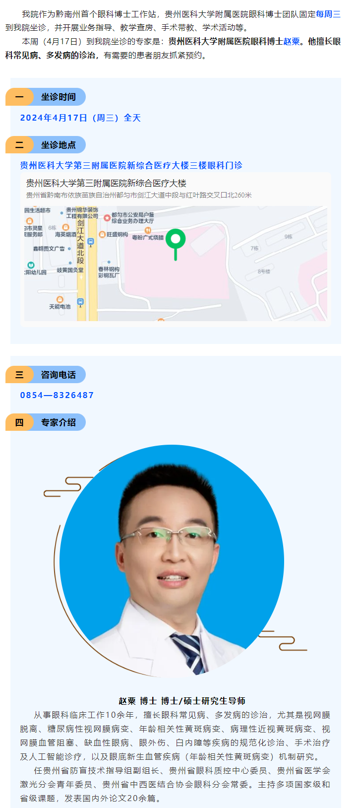 4月17日,贵医附院眼科博士赵粟又来啦!