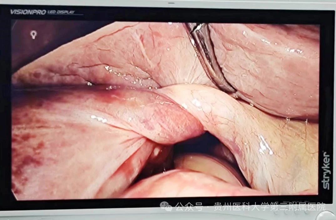 经讨论后,决定为徐奶奶行腹腔镜胆囊切除术。术中可见胆囊呈360°扭转,形如“麻花”,且胆囊开始出现坏死的情况。杨波凭借丰富的临床经验和娴熟精湛的腹腔镜技术,成功为徐奶奶实施手术,解除了她的病痛。