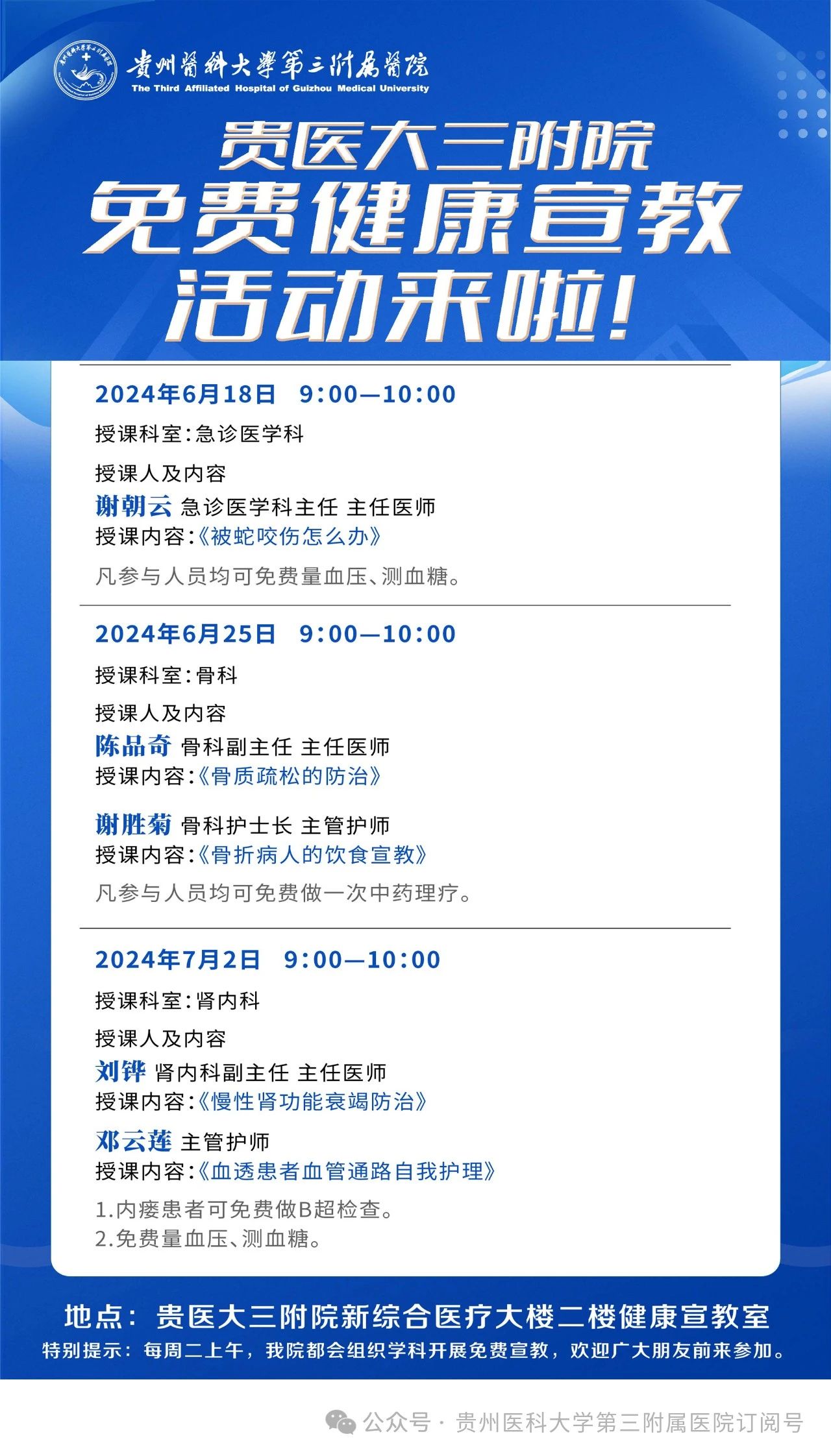 贵州医科大学第三附属医院新综合医疗大楼2楼健康宣教室