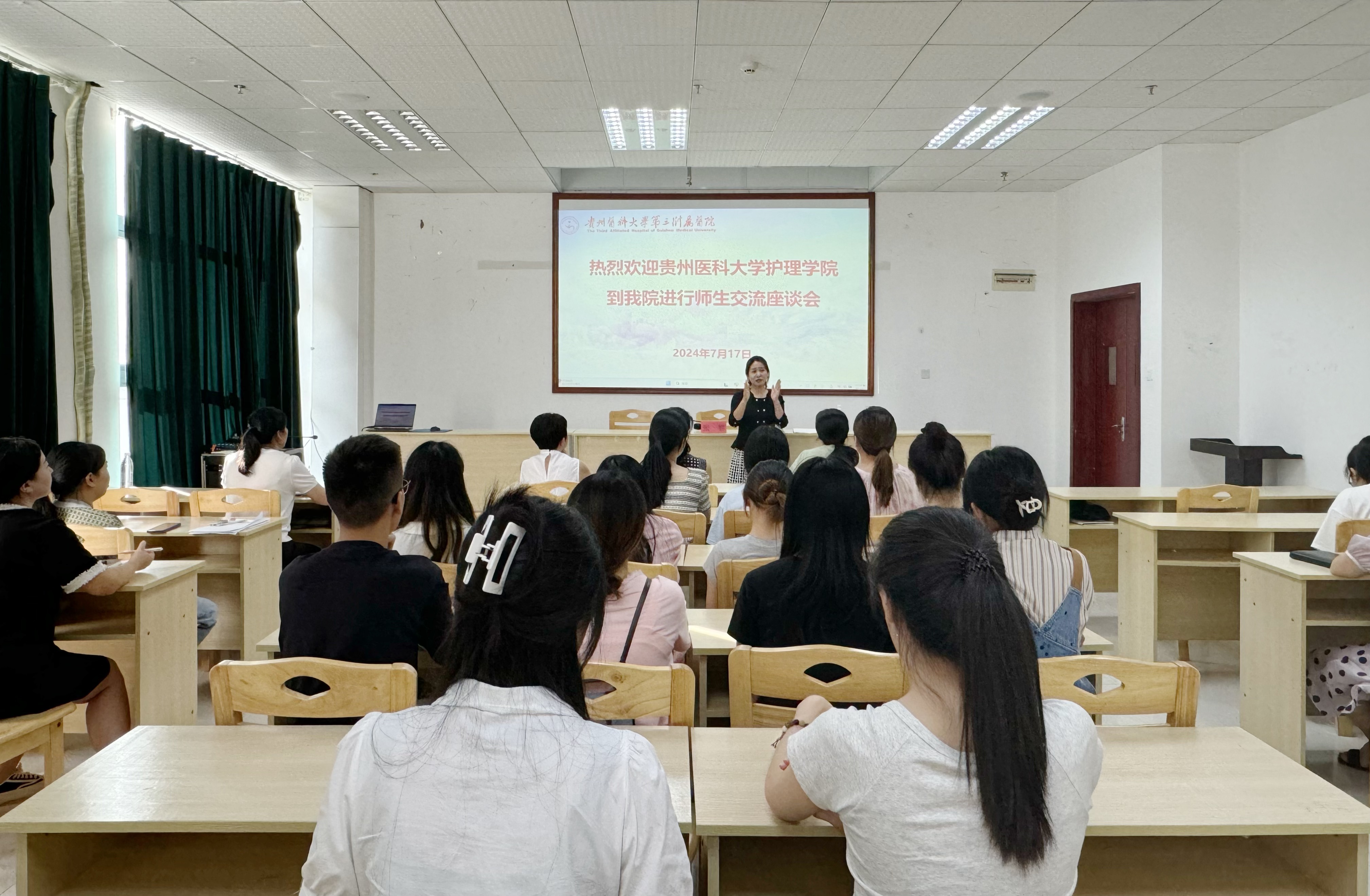 期间,贵州医科大学护理学院党委书记杨英、副处级组织员张黎还在行政楼一楼会议室与在我院实习的贵州医科大学护理专业学生进行交流,了解他们在我院的学习、生活情况。