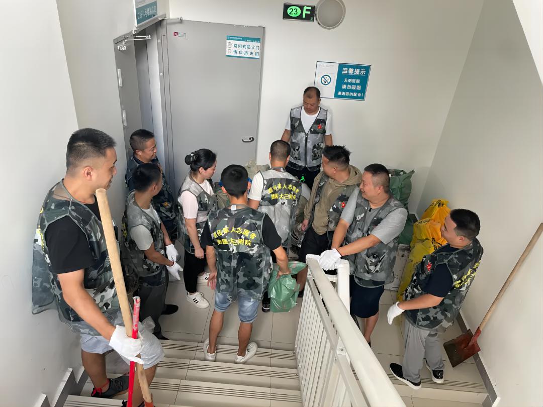 他们组成了“退役军人志愿服务队”,利用自己空余时间开展志愿服务活动。如:到医院新综合医疗大楼楼顶、医院家属区开展卫生清扫活动,参加义诊志愿服务、献血……用实际行动诠释军人本色和医护人员担当。