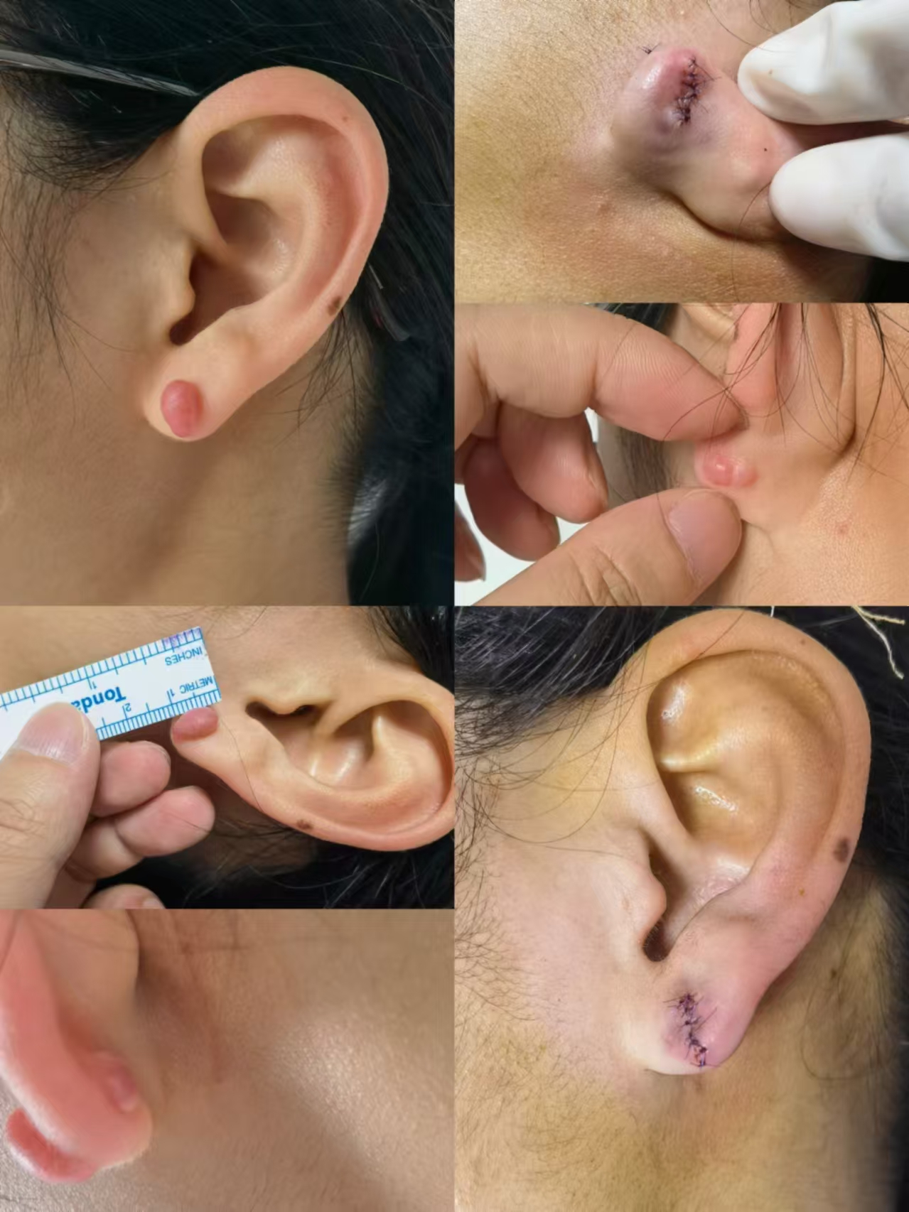 近日,一位爱美的小姐姐打耳洞导致耳垂发炎,长出了一个蚕豆大的“肉瘤”。她感到无比的沮丧与自卑。