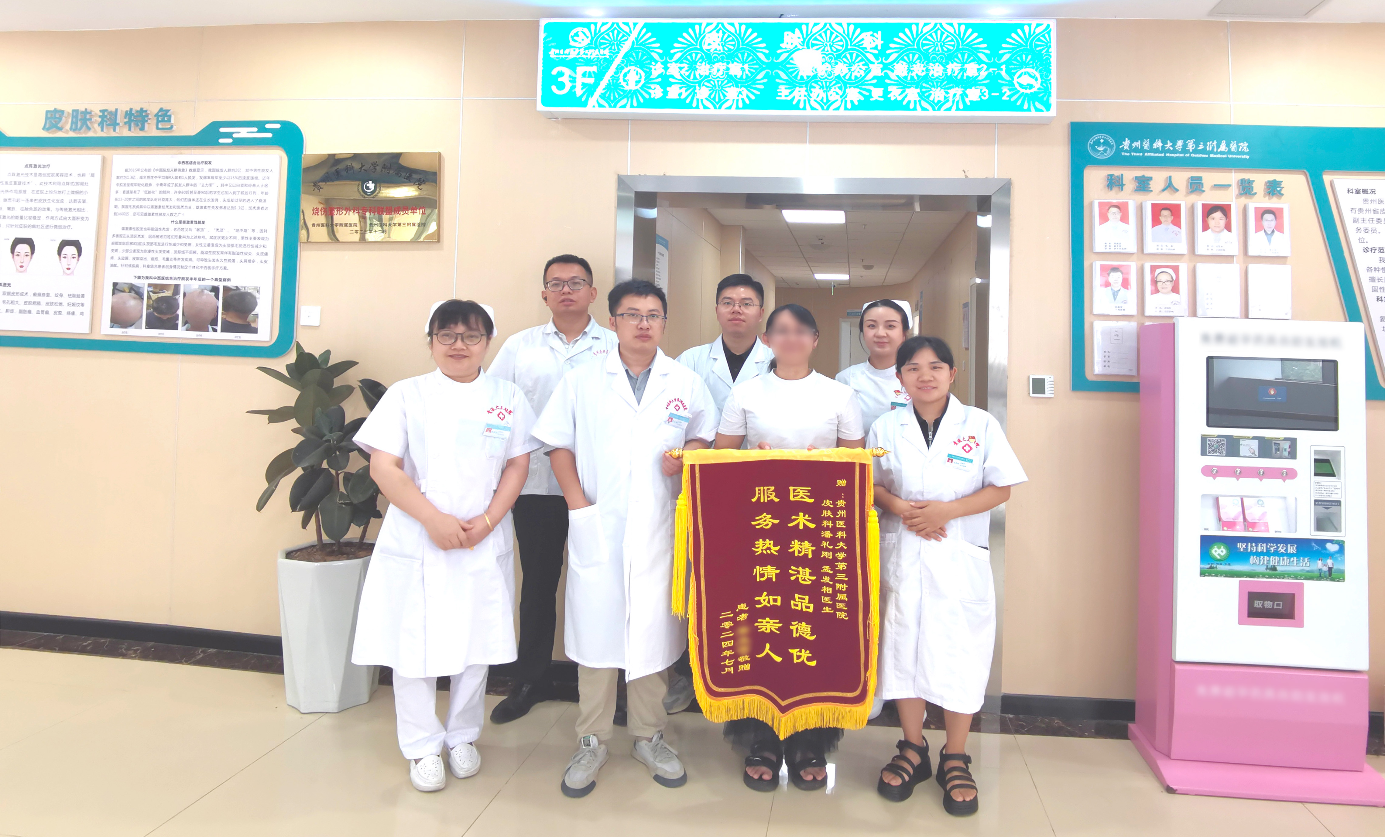 小姐姐非常满意,特定制了一面镌刻着“医术精湛品德优,服务热情如亲人”的锦旗,并送到了潘礼刚、孟发相医生手中。