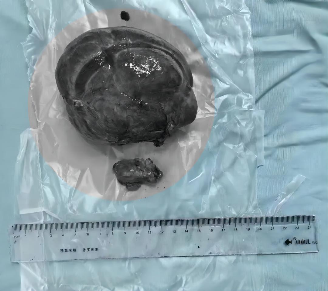 近日,我院乳腺甲状腺外科为一位患者成功切除了12cm的甲状腺肿物。