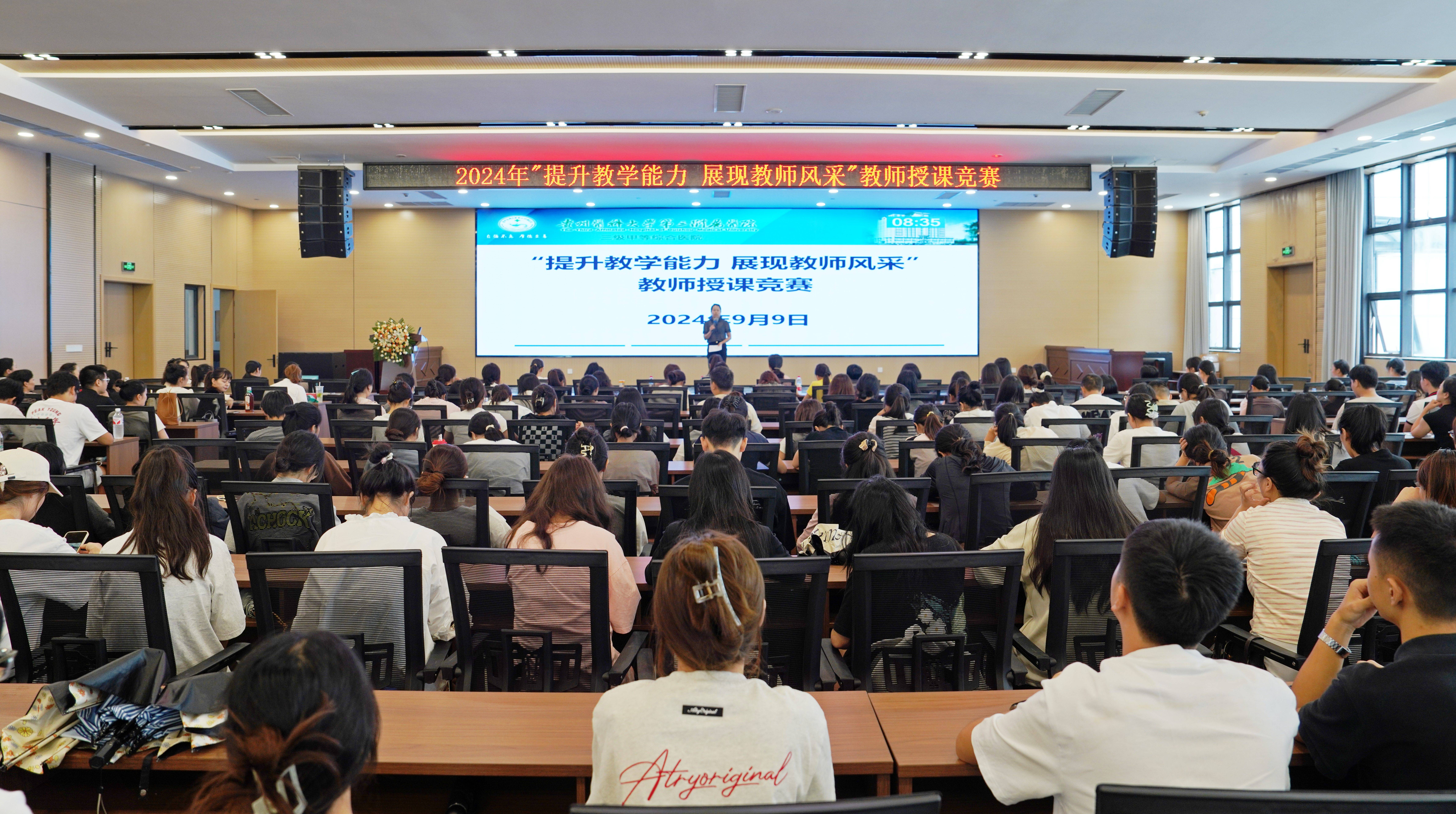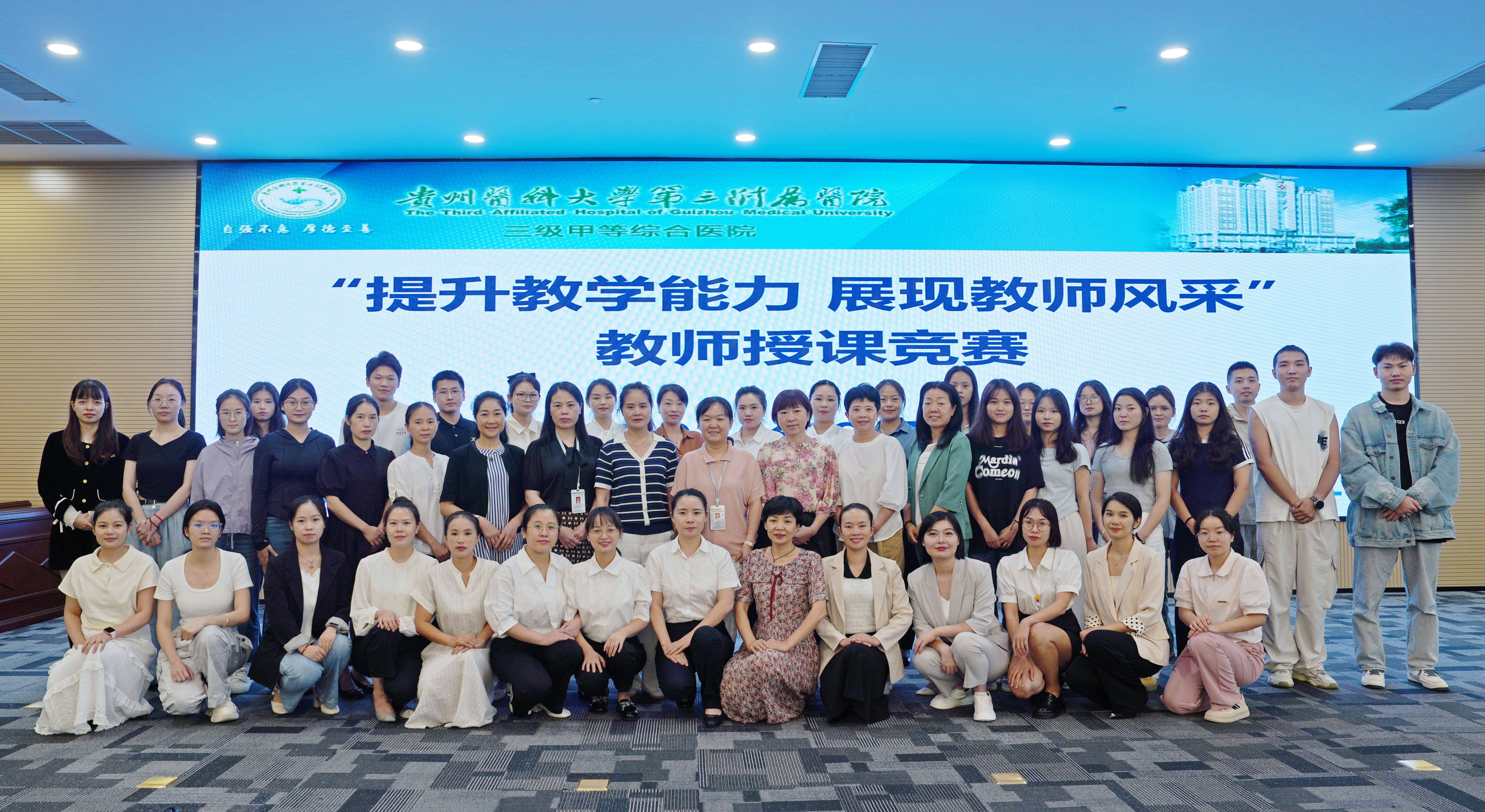 近日,在我国第40个教师节来临之际,我院开展了护理教师教学能力竞赛。22名护理教师参赛,护理部副主任朱红妞、临床教学部科长张玲等9人组成的评审团,护理实习生及贵州医科大学护理专升本同学等190余人参加。