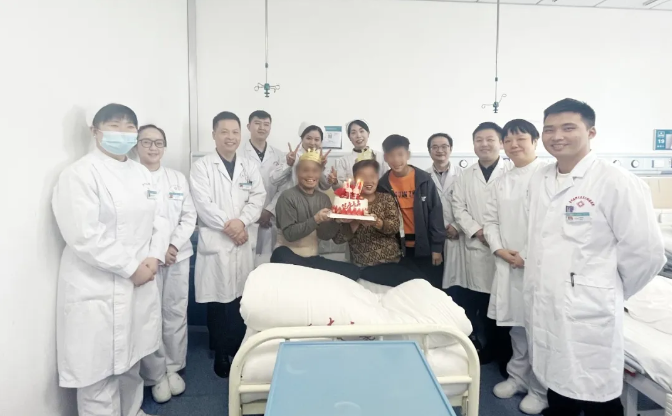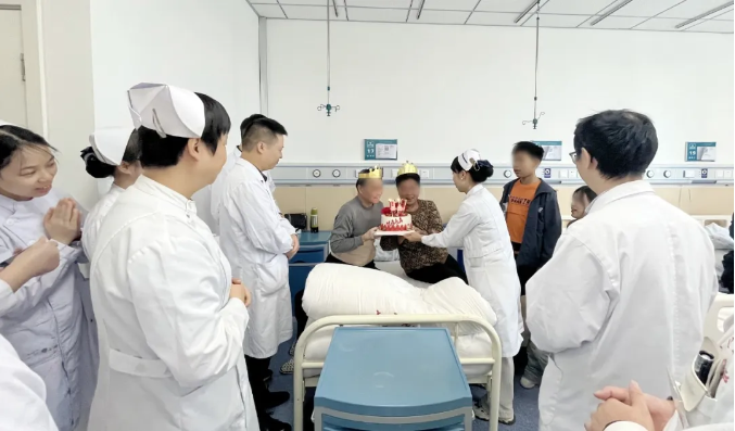 近日,我院疼痛科的病房里传来此起彼伏的祝福声,原来是科室医护人员在为住院患者李叔叔和他的妻子陈阿姨筹备“生日趴”。