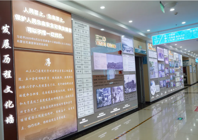 我院打造了发展历程文化墙,从三二〇、四一四、三附院3个时期展现医院历史,增强职工凝聚力。