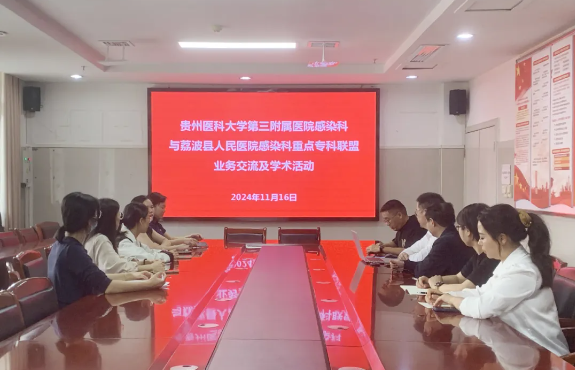近日,我院第十一党支部书记、感染科主任江苔带队到荔波县人民医院感染科开展重点专科联盟业务学术交流活动暨“传承红色基因”主题党日活动。