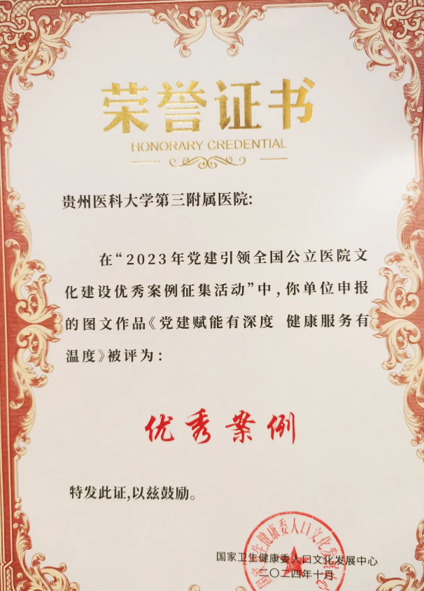 贵州医科大学第三附属医院始建于1971年,现隶属贵州医科大学,是一所集医疗、教学、科研、预防、保健和康复于一体的国家三级甲等综合医院。贵州医科大学第三附属医院始终坚持以党的政治建设为统领,以改革为抓手,以创新为动力,将党的建设与医院中心工作深度融合,把党建“软实力”转化为发展“硬支撑”,激发出高质量发展的蓬勃生机。