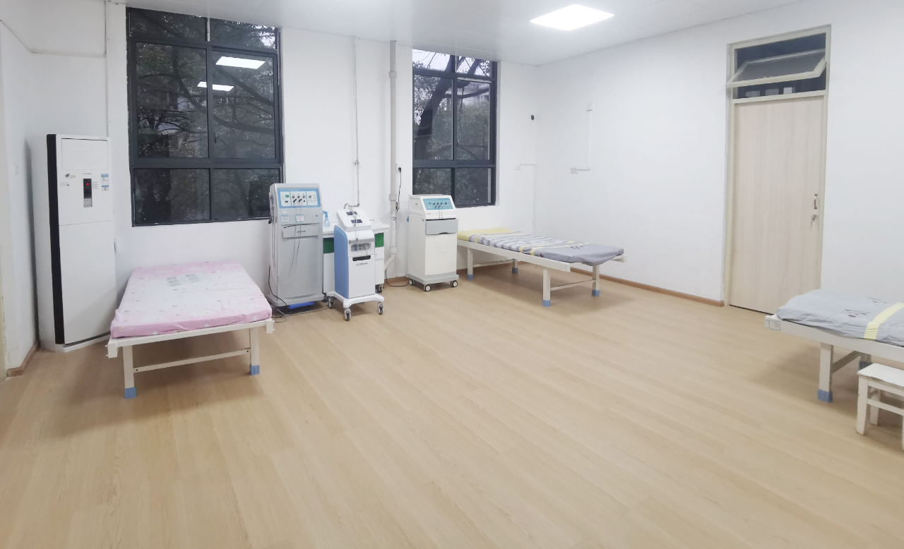 目前,设有运动治疗室、作业治疗室、言语治疗室、物理因子治疗室、传统康复治疗室等。配备有现代康复仪器,如:步态减重训练系统、单人站立床、下肢康复训练器、四肢联动康复训练仪、手指关节训练器、红外线治疗仪、肩关节训练器、腕关节训练器、电脑低频电疗机等。