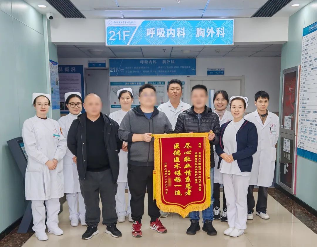 为表达对呼吸内科全体人员的感谢,11月27日,潘爷爷的家属将一面锦旗送至呼吸内科。