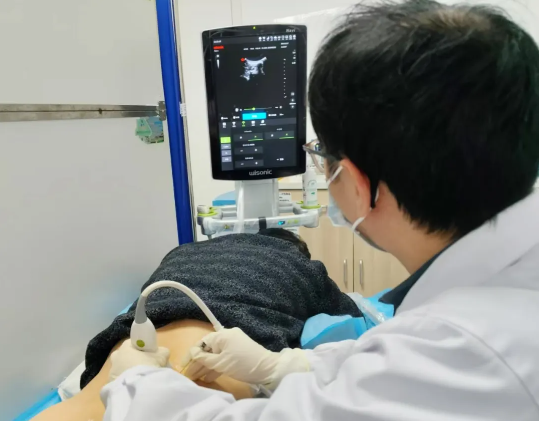 原来,王先生的腰骶部反复疼痛5年了,近日由于腰痛加重,便到我院疼痛科治疗。王先生被诊断为“腰椎间盘突出伴坐骨神经痛”。经与王先生及家属沟通,疼痛科决定为王先生行超声引导下神经根阻滞治疗。它是利用超声波成像技术来精确引导针头到达目标神经根的位置,从而进行药物注射以阻断神经传导,达到疼痛缓解的目的。