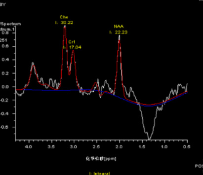 图为5G磁共振做的MRS图像,是目前能够进行活体组织化学物质无创性检测的方法。