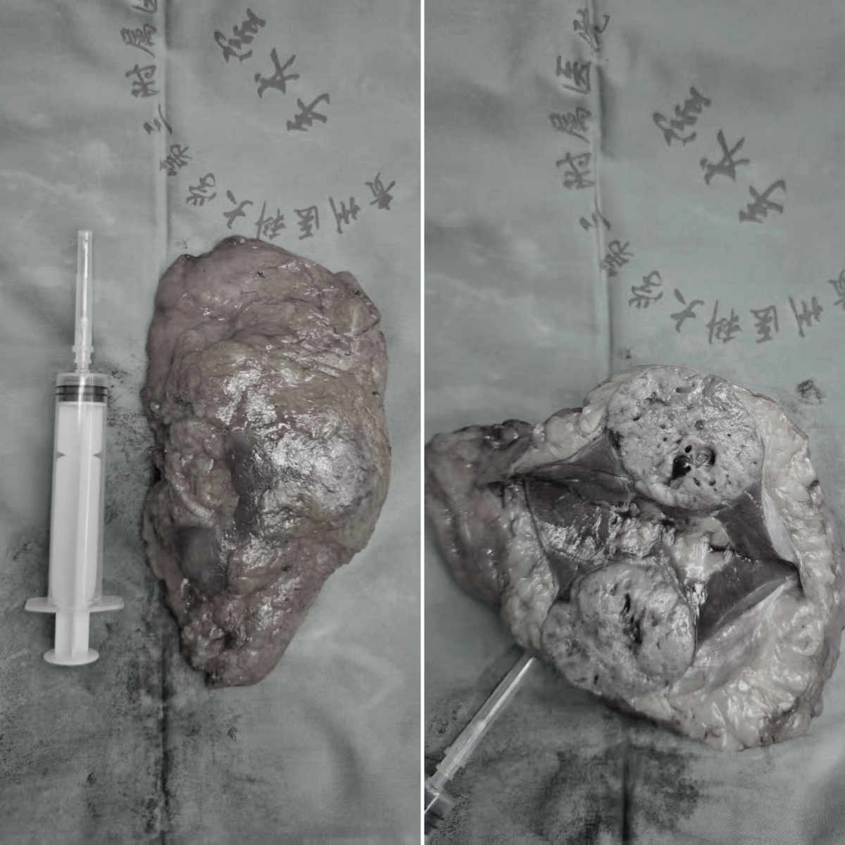 经过一系列的术前准备及评估后,在贵州医科大学附属医院泌尿外科副主任医师顾昌世的指导下,雷鸣、泌尿外科何多林医师为尤叔叔进行腹腔镜下右侧肾癌根治性切除术。整个手术过程顺利,出血约20ml,成功切除约5.0×5.5cm肿瘤。