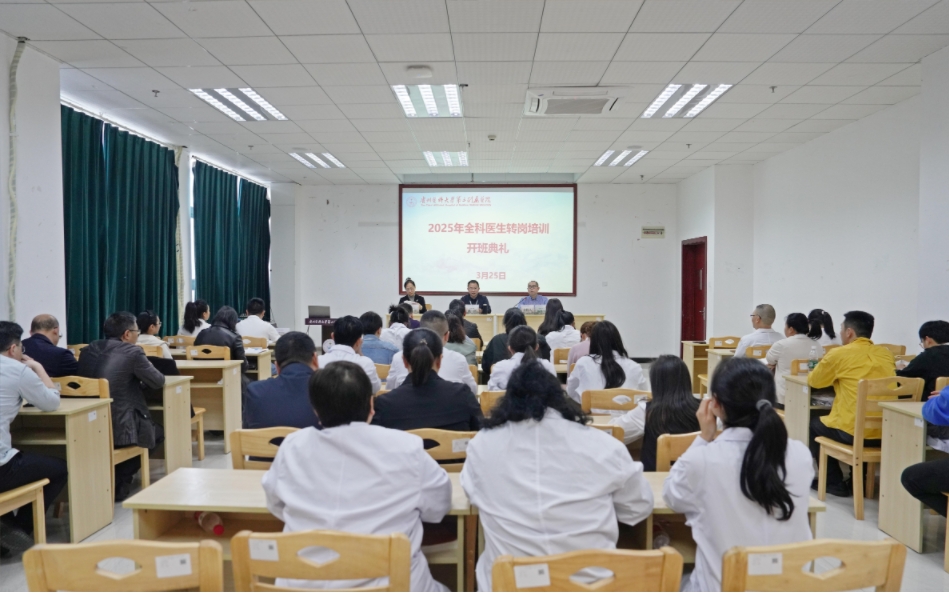 3月25日,我院举办了“2025年全科医生转岗培训开班典礼”。党委书记姚辉、党委副书记杨胜华、副院长程华出席,临床教学部、承担全科医生转岗培训工作的指导老师和学员参加。