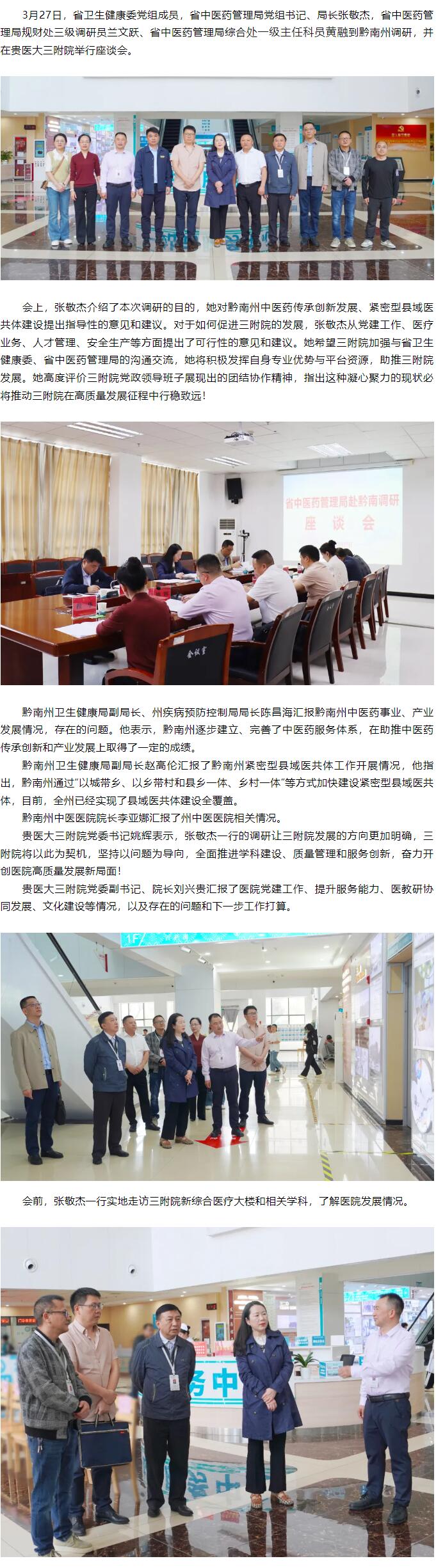 省卫生健康委党组成员,省中医药管理局党组书记、局长张敬杰一行到黔南州调研