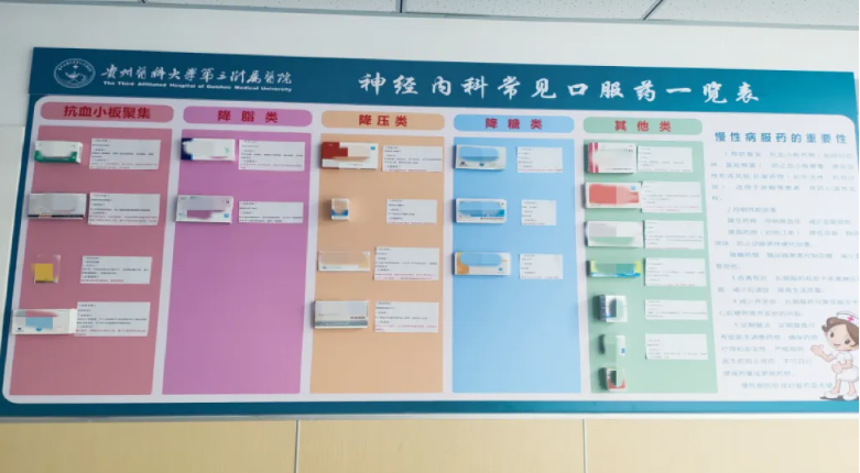 为破解“难题”,我院神经内科打造了这面“会说话的药盒墙”。