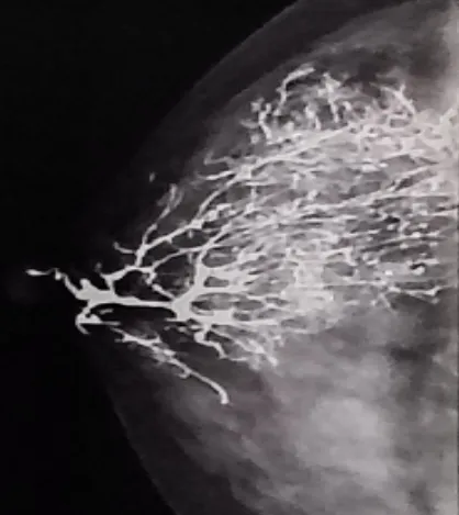 我院影像科主任康龙山介绍说,乳腺导管造影是通过将造影剂注入乳腺导管,在X线照射下显示清晰的导管图像,从而判断乳腺内部是否存在异常情况。特别在乳腺癌早期筛查,良、恶性病变鉴别及乳腺结核诊断中具有不可替代的作用。通过该项检查,医务人员可直观评估病变范围及性质,从而为患者制定个性化的诊疗方案。