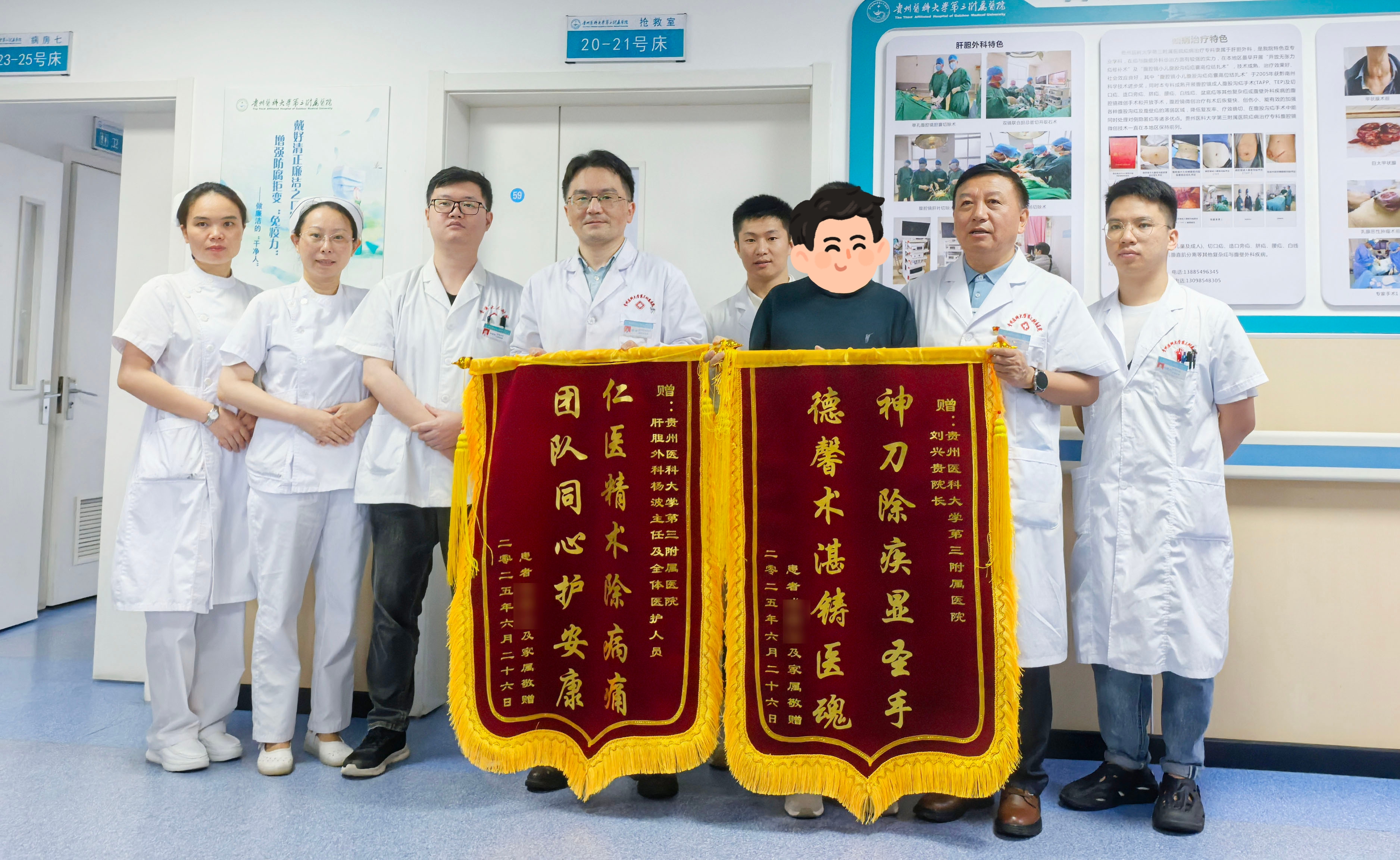 术后,成先生恢复良好。为表达感激之情,他向刘兴贵及肝胆外科团队各赠送了1面锦旗,还笑着说“三附院成功帮我减肥啦”。