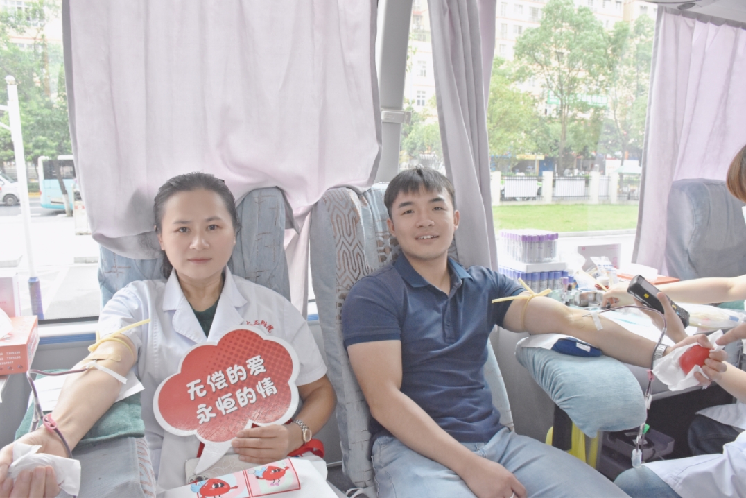 活动现场,医院党委副书记杨胜华带头登上献血车,成功献血!