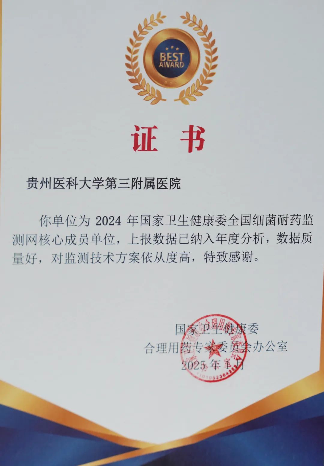 此次获奖既是对医院细菌耐药监测能力的充分肯定,也激励我院继续推进精准诊疗与抗菌药物合理应用工作,为健康贵州、健康中国建设贡献更多力量。