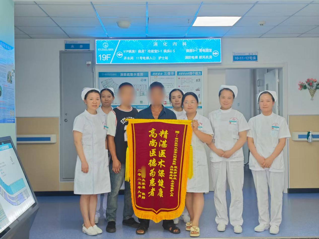 近日,大叔将一面锦旗送到了我院消化内科,还录制了视频表示感谢。