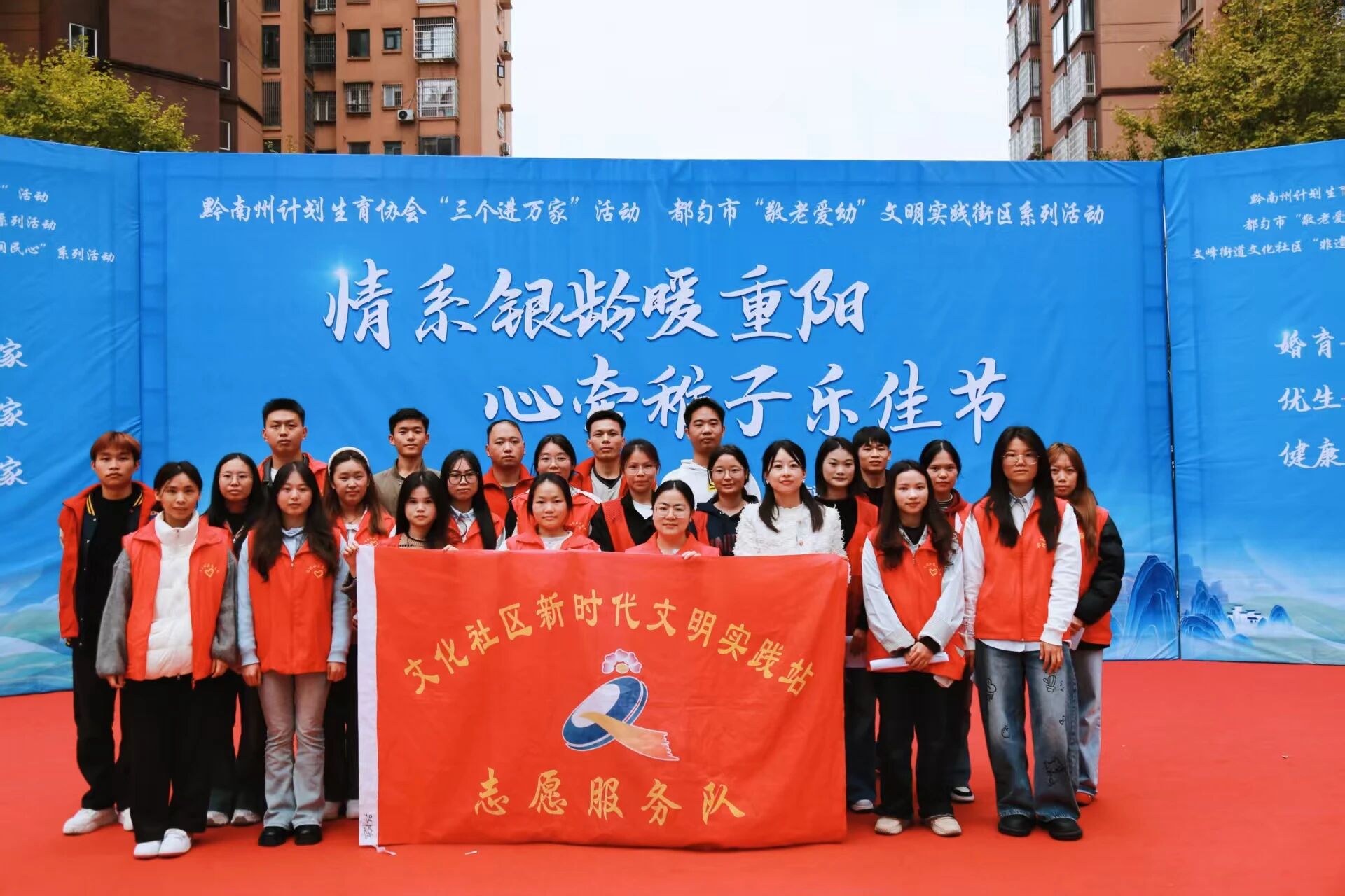 在黔南州计划生育协会举办的“情系银龄暖重阳,心牵稚子乐佳节”活动中,我院组织贵州医科大学护理学专升本2班的学生们用歌声传递深情。一曲激昂澎湃的《歌唱祖国》大合唱,不仅表达了对老人们的真挚祝福,也抒发了对伟大祖国的深切热爱,为活动现场增添了浓浓的节日温情。