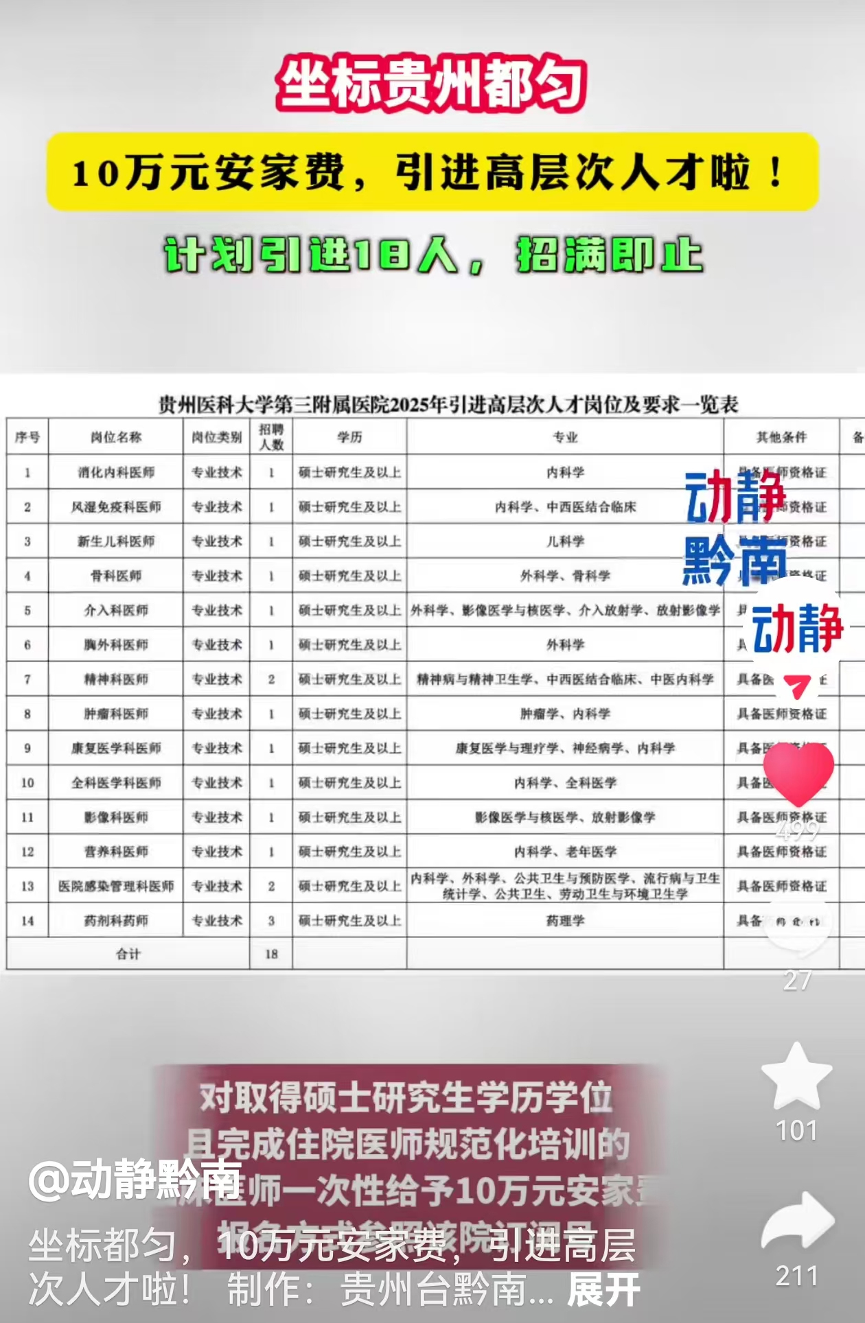 动静黔南抖音号 |坐标都匀!10万元安家费,引进高层次人才啦!
