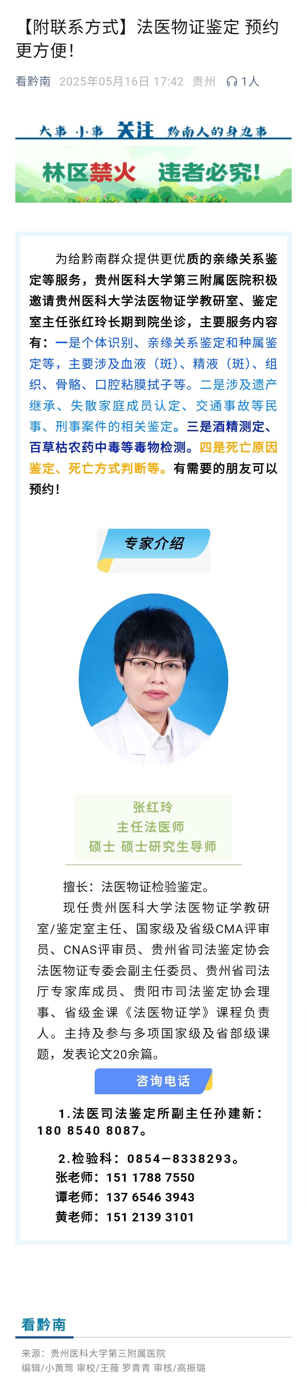 看黔南|【附联系方式】法医物证鉴定 预约更方便!