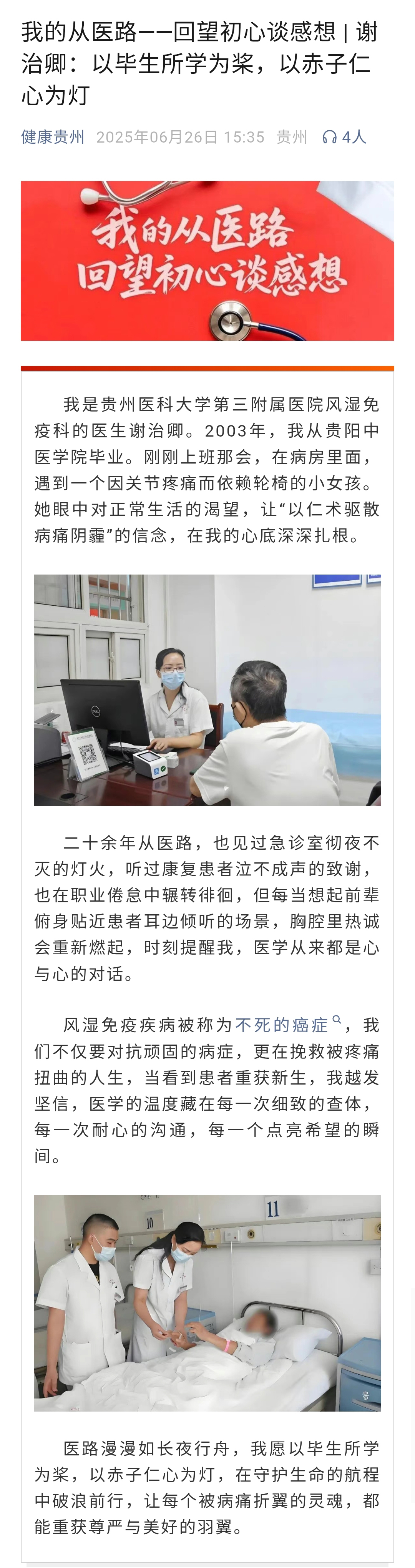 健康贵州|我的从医路——回望初心谈感想 | 谢治卿:以毕生所学为桨,以赤子仁心为灯