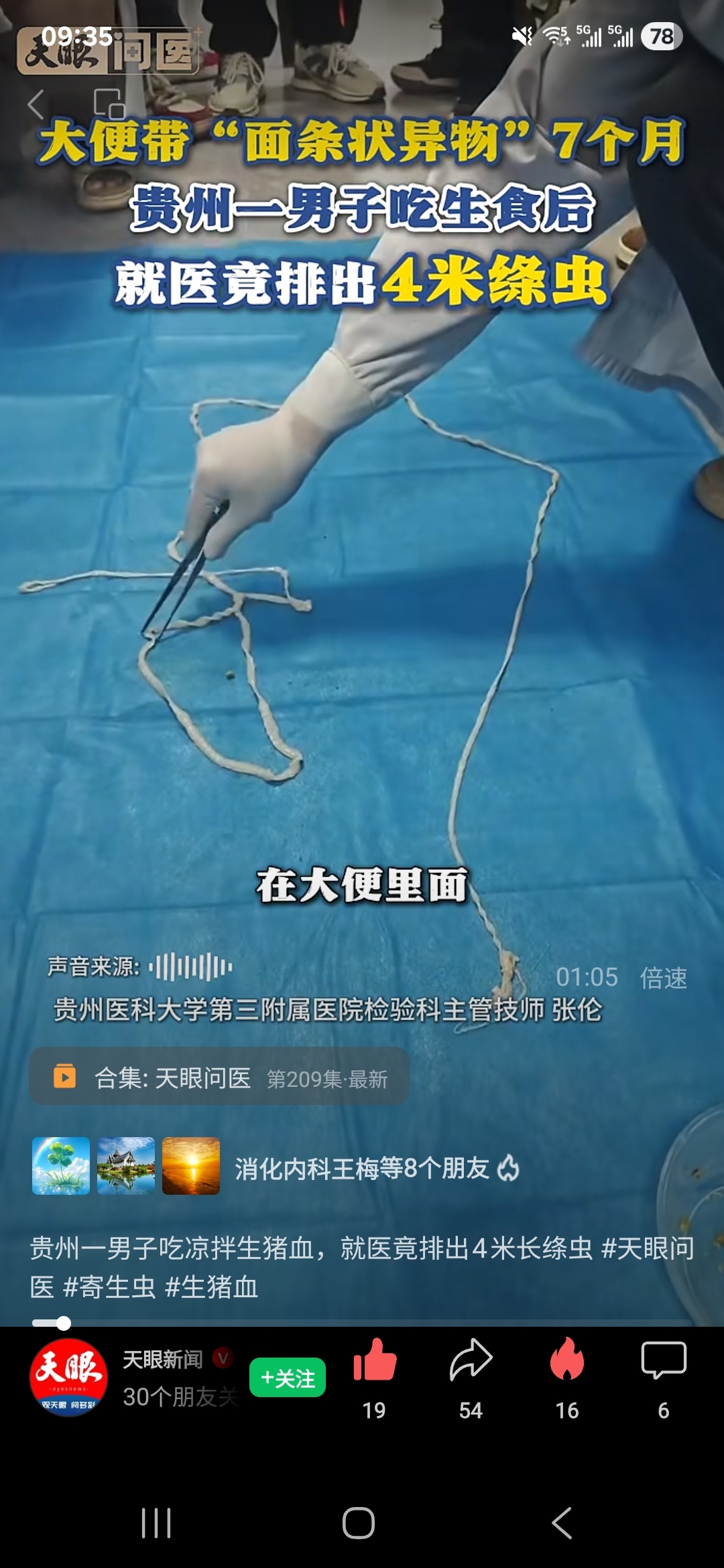 贵州一男子吃凉拌生猪血,就医竟排出4米长绦虫