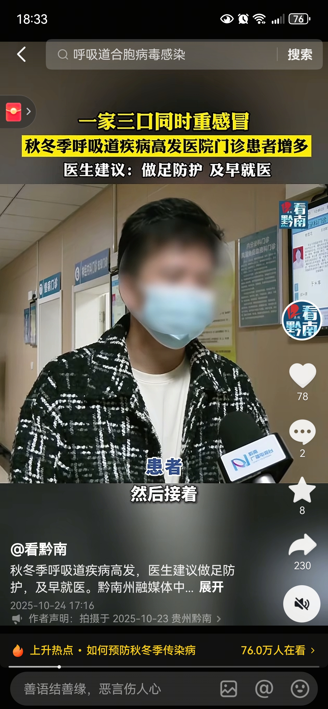 看黔南抖音号| 一家三口同时重感冒 秋冬季呼吸道疾病高发医院门诊患者增多 医生建议做足防护 及早就医