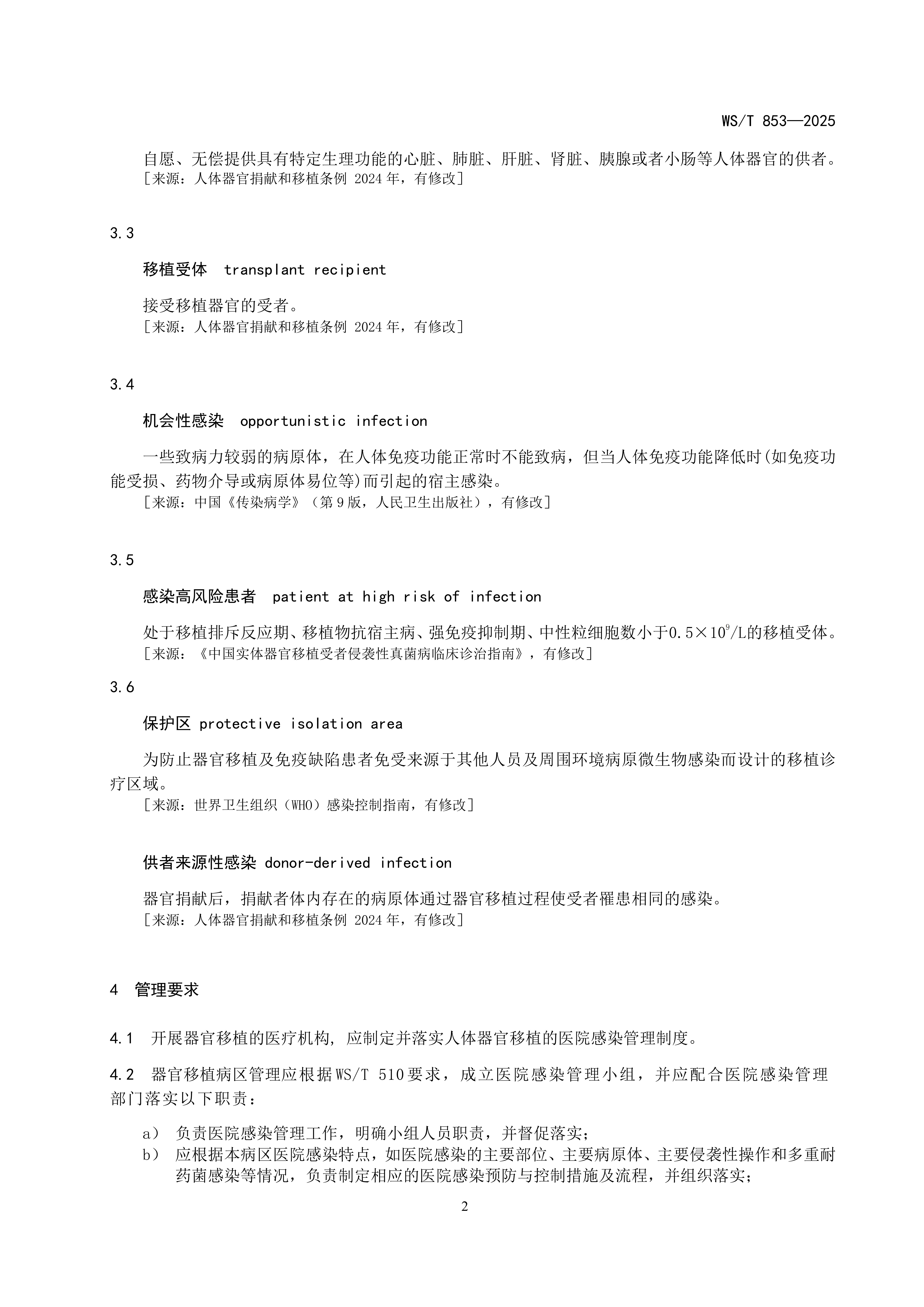 器官移植病区医院感染预防与控制标准
