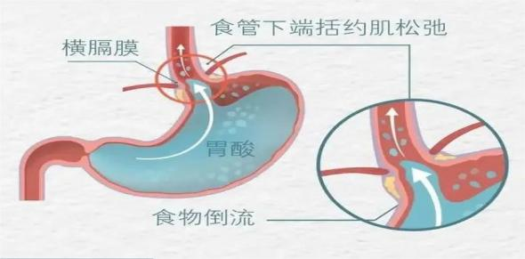 在食管下端和胃连接处有一个肌肉,叫食管下括约肌,相当于一个“阀门”,正常情况下,人在吞咽食物的时候,食管下括约肌会舒张,这样会使食物进入胃内。当食物到达胃后,食管下括约肌收缩,防止胃内容物反流入食管。如果这个食管和胃连接处的“阀门”坏了,关不紧了,胃酸倒流回到食管,刺激食管黏膜,就可能会引起反酸、烧心等消化道症状,甚至出现口腔溃疡、胸闷、心慌等情况。如果长期出现胃食管反流,食管可能发生糜烂,甚至会导致反流性食管炎、溃疡、狭窄甚至梗阻、巴雷特食管等。